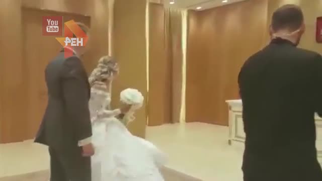 На этих кадрах можно увидеть, как жениха и невесту объявляют мужем и женой.