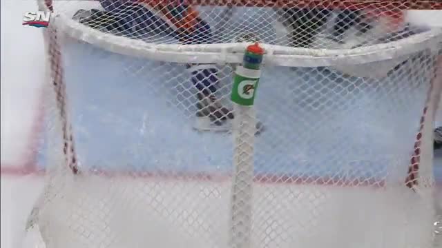 Так, после броска Малкина вратарь сборной противника не сумел зафиксировать шайбу, после чего хоккеист "Эдмонтона" Макждэвил попытался выбить ее из ворот коньком, однако попал в своего годкипера. Отрикошетив от вратаря, шайба влетела в ворота.