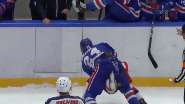 Защитник "СКА" получил удаление за подножку, после чего началась драка. Всего участники потасовки получили 180 штрафных минут за свои действия.